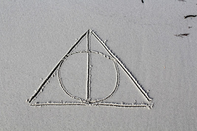 Deathly Hallows symbol made from chopsticks, embroidery hoop and winged keys.